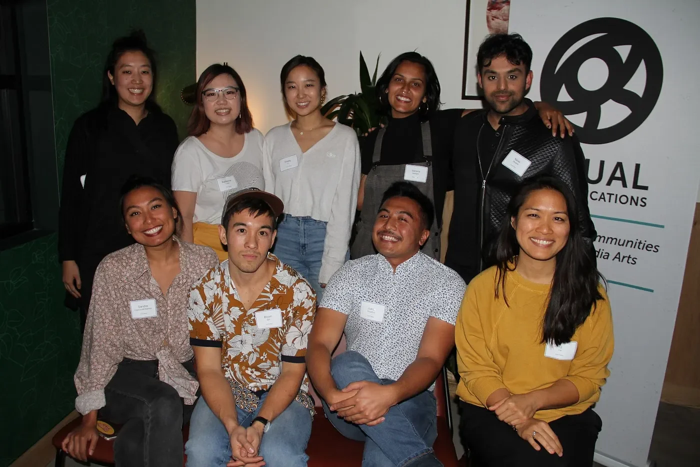 2016 AWC Fellowship — Top: Mentors Milton Liu & Ann Kaneko, Kayla Tong, Faroukh Virani, Conrad Lihilihi, Sumiko Braun, Stanley Wong. Bottom: Tulica Singh, Quyên Nguyen-Le — with Kristy Ishii. Photographed by Brandon Okumura.