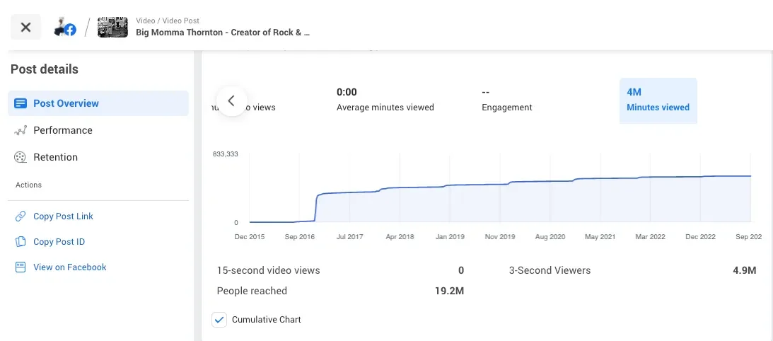 Metrics provided by Meta Business Suite for Brands for Harlem Film House 2023 (Credit: Meta)